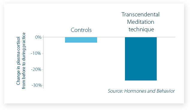 A landmark study published in Hormones and Behavior found the TM technique reduces cortisol by 30%.